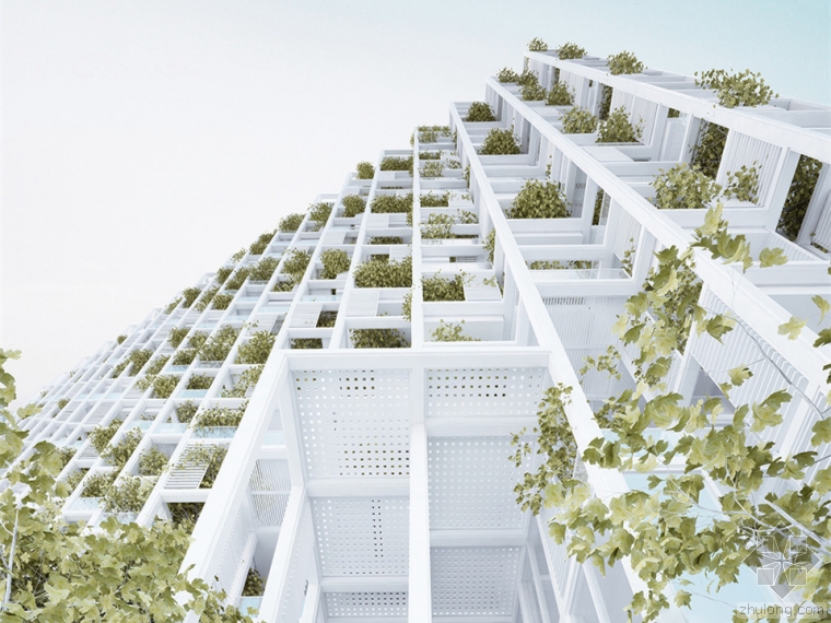 penda首先將一棟建筑中的必要元素——結(jié)構、墻體、外立面、天花、地面、基礎設施、陽臺和景觀等要素從傳統(tǒng)的整體思維中分解出來。然后從一個模塊化的格構系統(tǒng)獲得靈感,在新的格構系統(tǒng)中只有網(wǎng)格結(jié)構和基礎設施是固定的部分。而其他的要素都可以通過工廠預制進行模塊化加工。這些模塊可以為客戶提供一份目錄,業(yè)主可從產(chǎn)品目錄中選取這些模塊。模塊范圍包括不同的地面單元、外立面單元、欄桿陽臺以及供植物生長的豐富多樣的花盆等??蛻艨梢匀我膺x擇符合他們自己品位的元素進行搭配。penda希望為業(yè)主提供的是一個工具,使他們成為自己公寓的設計者。