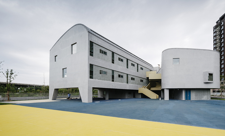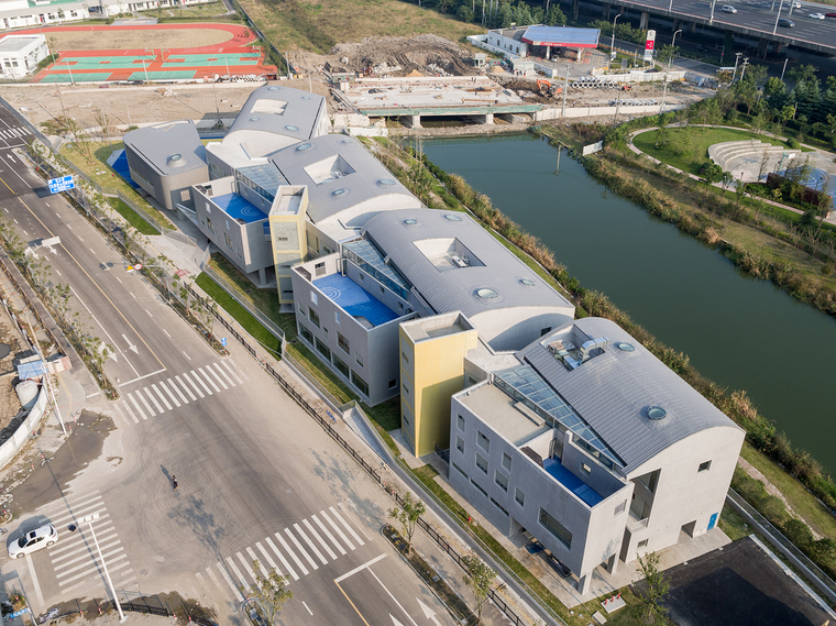 幼兒園是孩子們在成長過程中第一個接觸的公共空間??臻g的尺度、使用的靈活度以及室內(nèi)的場景和氛圍,對于幼兒的感受和認(rèn)知都有很大影響,對于建筑師也是一個挑戰(zhàn)。設(shè)計要能激發(fā)孩子們探索和學(xué)習(xí)的興趣,同時要給他們足夠的安全感,要有家的感覺。在調(diào)研期間,設(shè)計團隊也發(fā)現(xiàn),非正式空間-如活動室前的走廊-往往是孩子們生活、交往、嬉戲的重要場所。功能、空間與環(huán)境的關(guān)系,是本案在設(shè)計初始所面臨的主要矛盾和核心議題。張江萬科實驗幼兒園位于一個狹長的三角形地塊?;啬蟼?cè)為中環(huán)路高架與河道綠化,北側(cè)為高層住宅區(qū),東側(cè)為一座跨河道的車行橋,西側(cè)則為一棟需要容納在場地內(nèi)的區(qū)域環(huán)網(wǎng)站。要做出一個回應(yīng)場地限制條件并符合教育局規(guī)范標(biāo)準(zhǔn)的15個班全日制幼兒園,這塊特殊的基地便顯得極具挑戰(zhàn)性。建筑師需要在滿足規(guī)劃指標(biāo)、使用面積、規(guī)范性、安全性等硬性要求的前提下,在一個相對局促的場地里,創(chuàng)造出符合老師教學(xué)管理、誘發(fā)兒童探索心理、和滿足家長預(yù)期的幼兒園。